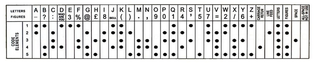 The original Baudot code was devised in the early 1870’s by Emile Baudot. After a few revisions, the 5-bit Baudot character set looked like this: