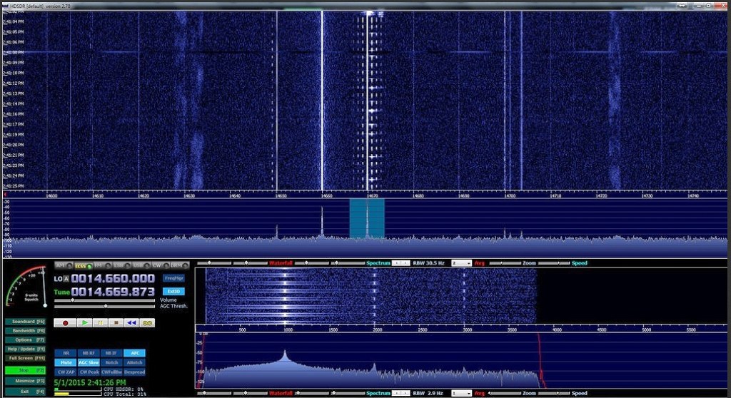 SDRs have a spectrum display. Spectrum displays allow the operator to view an entire band, or just an interesting segment of the band. This “window” is displayed on a computer screen or on an inbuilt screen on the radio.