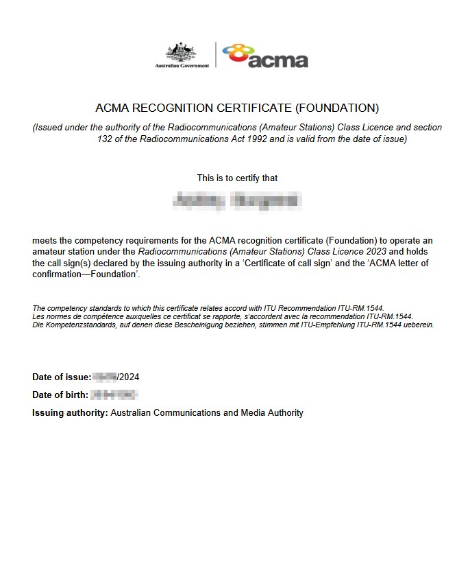 ACMA Fees for certificates and callsigns may be adjusted over time. To discover the most up to date pricing, visit the ACMA website: https://www.acma.gov.au/amateur-radio-related-fees