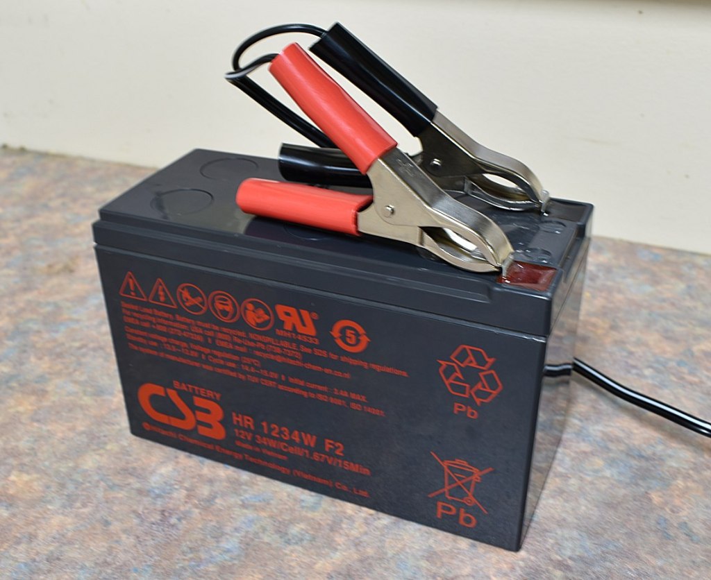 Here is a sealed lead-acid battery with two defective cells, attached to a battery charger.