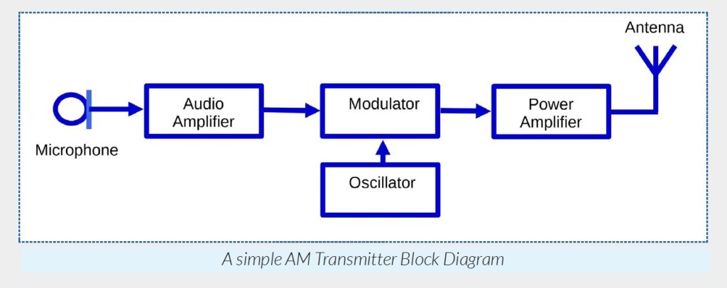 Below is the block diagram of a simple Amplitude Modulation (AM) transmitter: