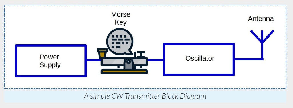 Below is the block diagram of a simple Continuous Wave (CW) transmitter capable of transmitting a short distance.