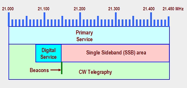 - 21.000 – 21.450 MHz is a Primary Amateur allocation